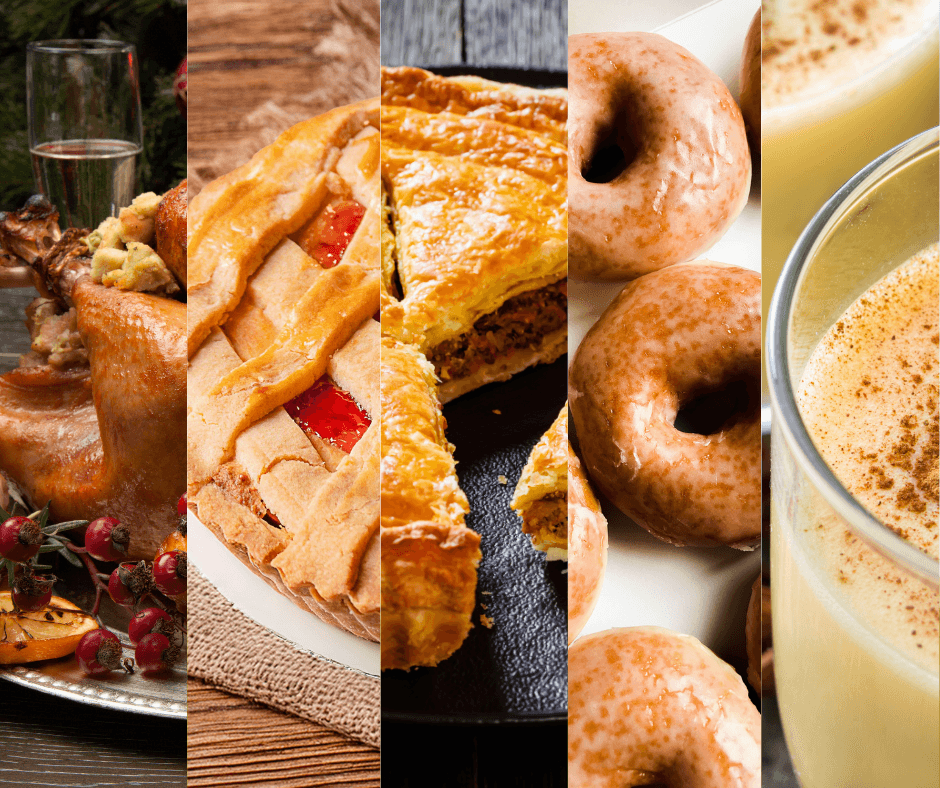 Seize recettes incluant tous les classiques pâtés, tartes, sans oublier la traditionnelle dinde de noël et ses accompagnements, en passant par le décadent gâteau au fromage et les beignes!